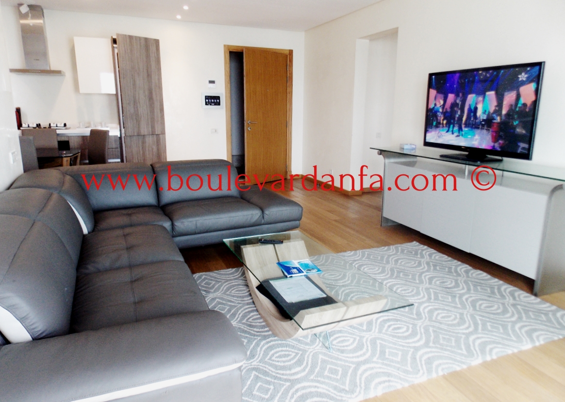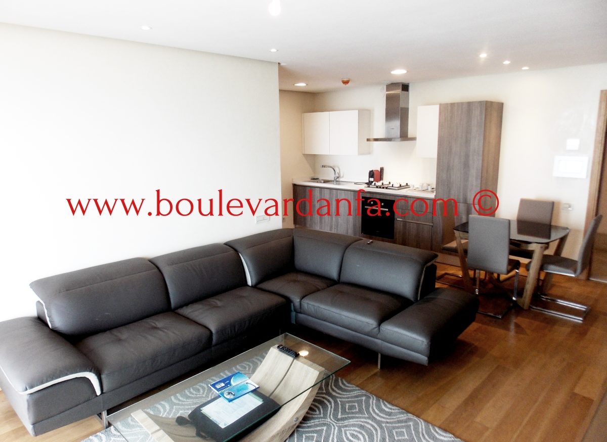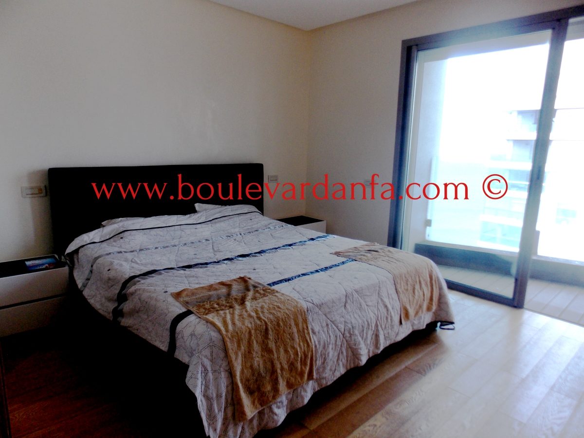 Très joli appartement meublé de 100 m² à louer à la marina de Casablanca avec vue sur mer, dans une résidence très bien sécurisée avec jardin. Il est composé de 2 chambres, un salon, 2 salles de bain, une cuisine et un grand balcon.
