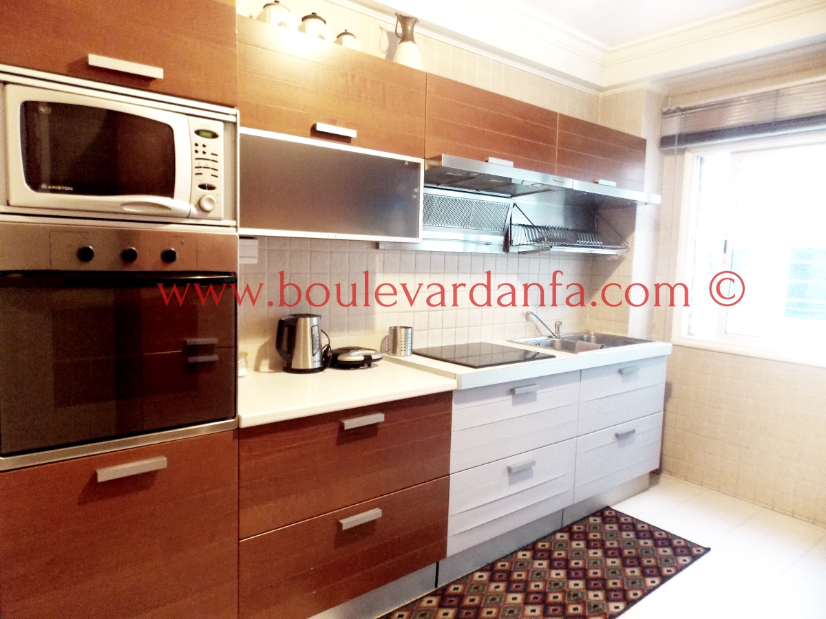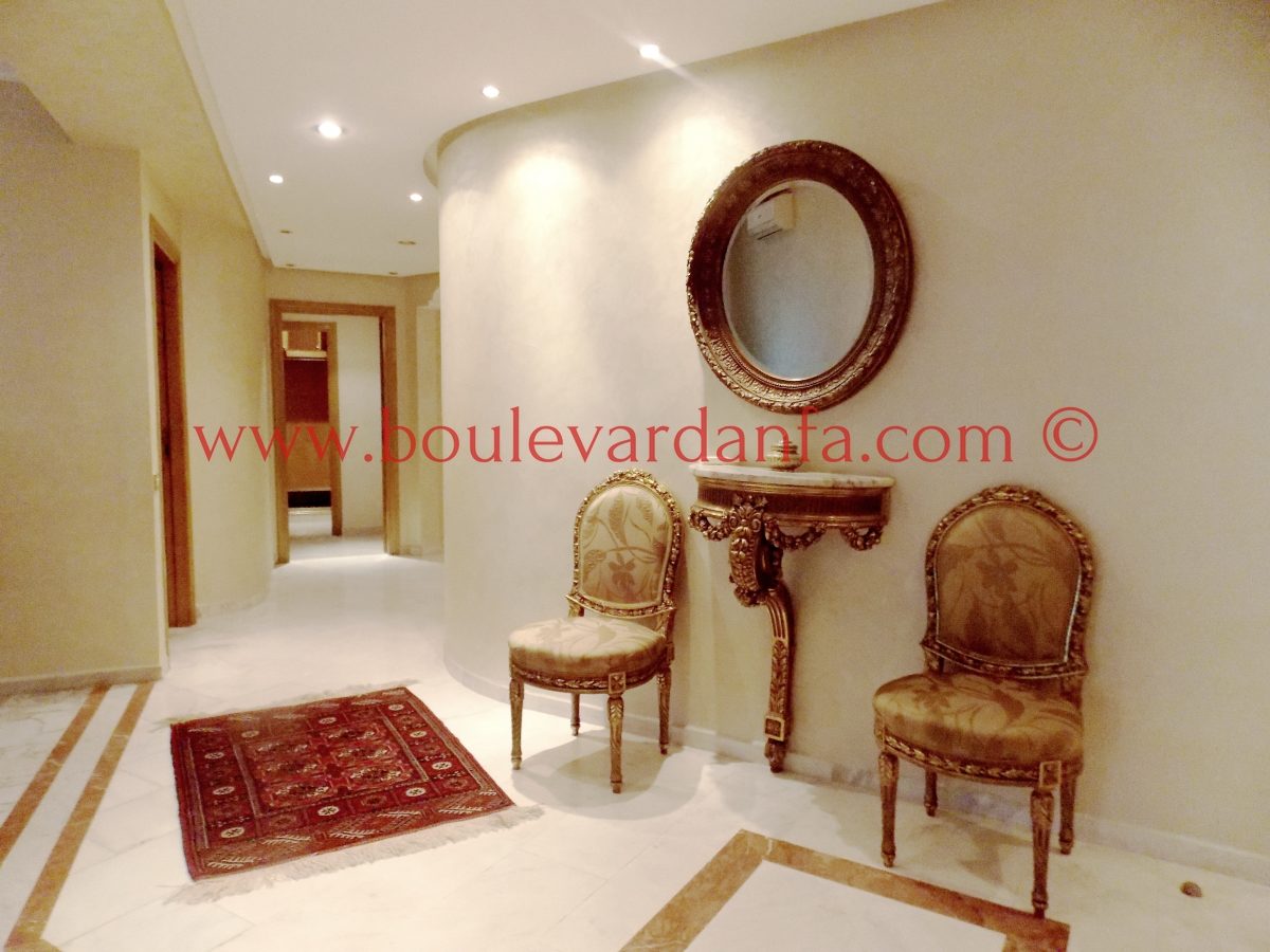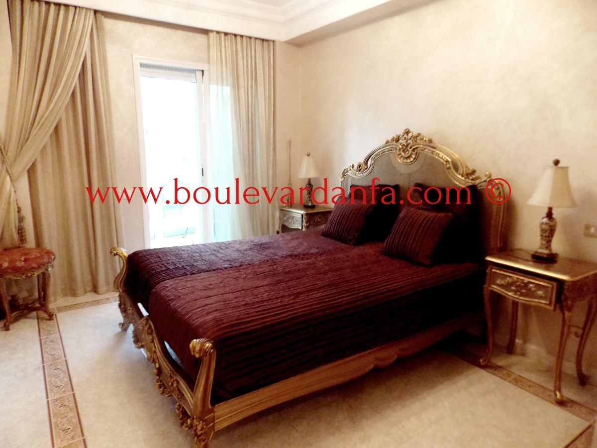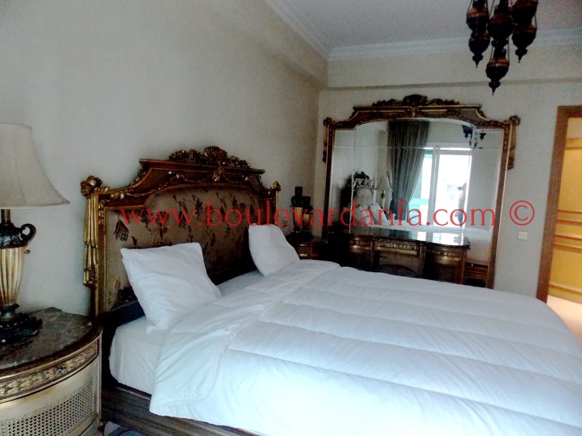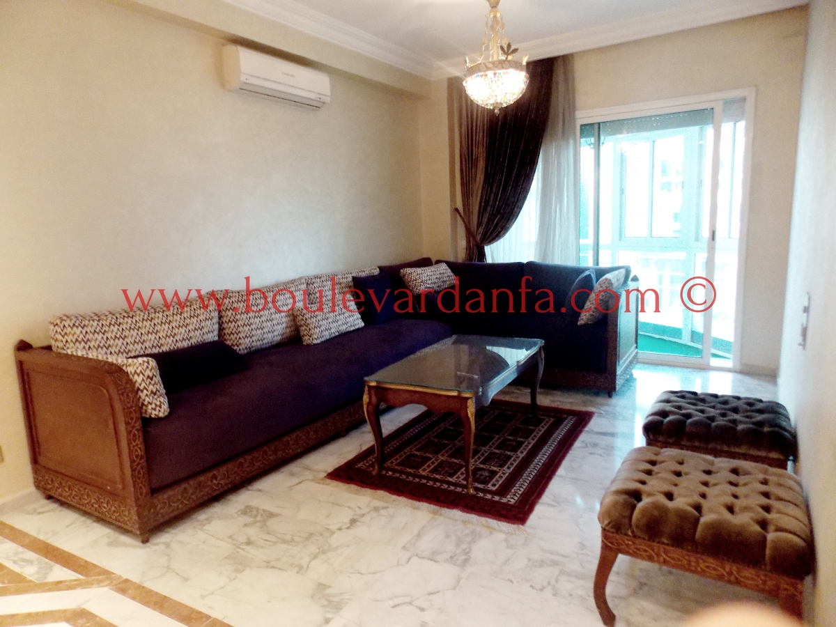 Un appartement très joliment meublé de 155 m² sur boulevard al massira, proche de toutes commodités. Il est composé de deux chambres dont une avec dressing, deux salons, deux salles de bain, une cuisine équipée, un coin salle à manger, et un balcon.