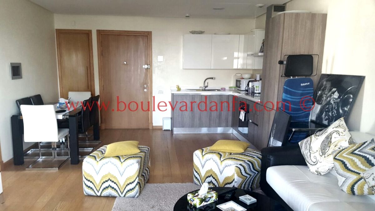 Superbe appartement meublé à louer à la nouvelle marina de Casablanca avec une vue dégagée sur Mer, disponible en location à partir du 1er Mai 2018. Cet appartment décoré avec beaucoup de goût est composé d'un Salon avec grande baies vitrées et d'une chambre à coucher avec vue sur mer et d'une cuisine américaine bien équipée