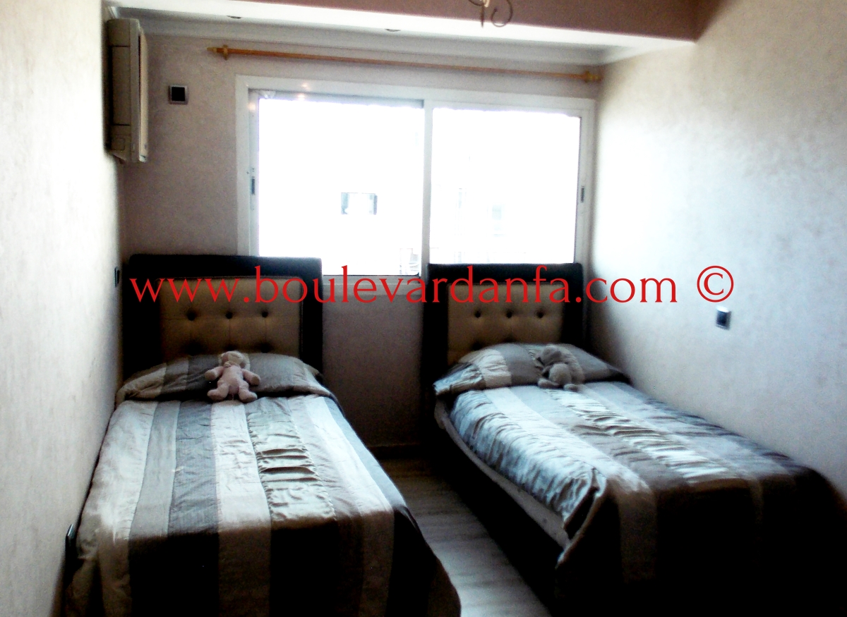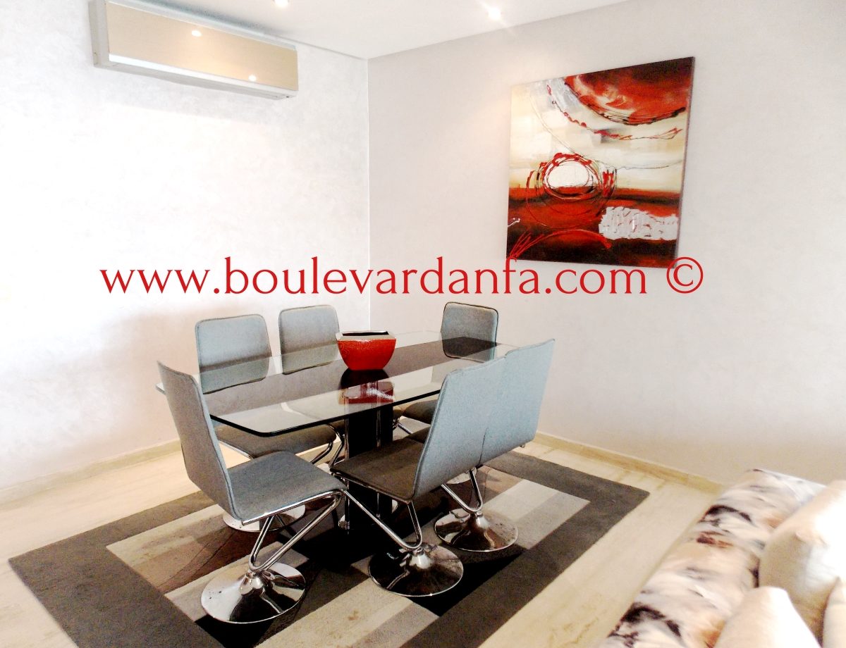 Charmant appartement de 145m² joliment meublé, à louer à maarif extension dans une résidence sécurisée avec concierge. L'appartement se compose de deux chambres dont une suite parentale avec dressing, double salon européen, deux salles de bain et une cuisine bien équipée.