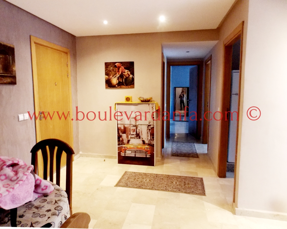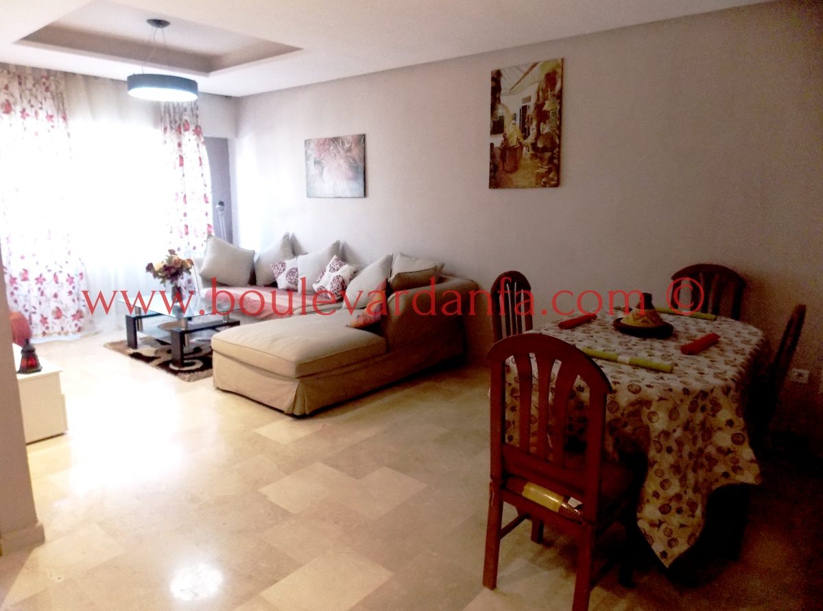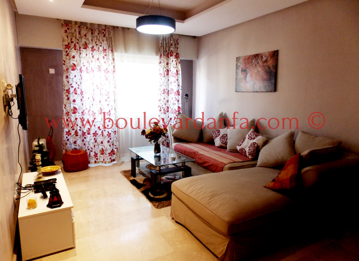 Très Joli appartement meublé à louer à quelques pas de Boulevard d'Anfa au centre de Casablanca. Cet appartement meublé avec goût est composé de deux chambres, deux salles de bain, un salon, et une grande terasse, le tout au 4ème étage d’une résidence sécurisée.
