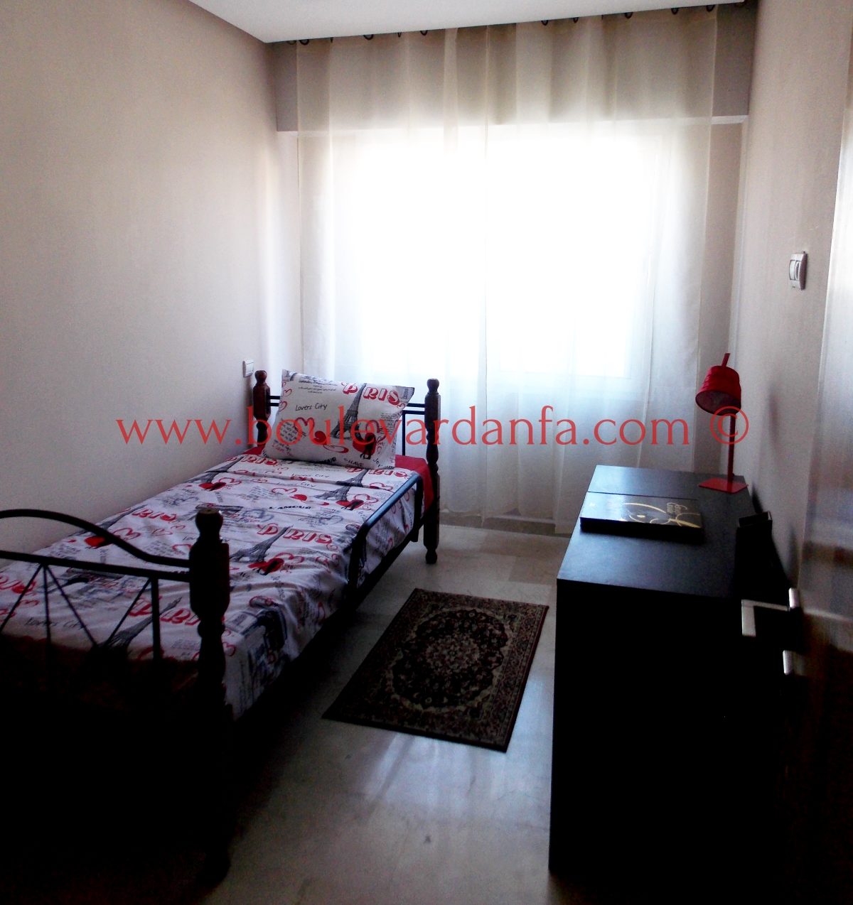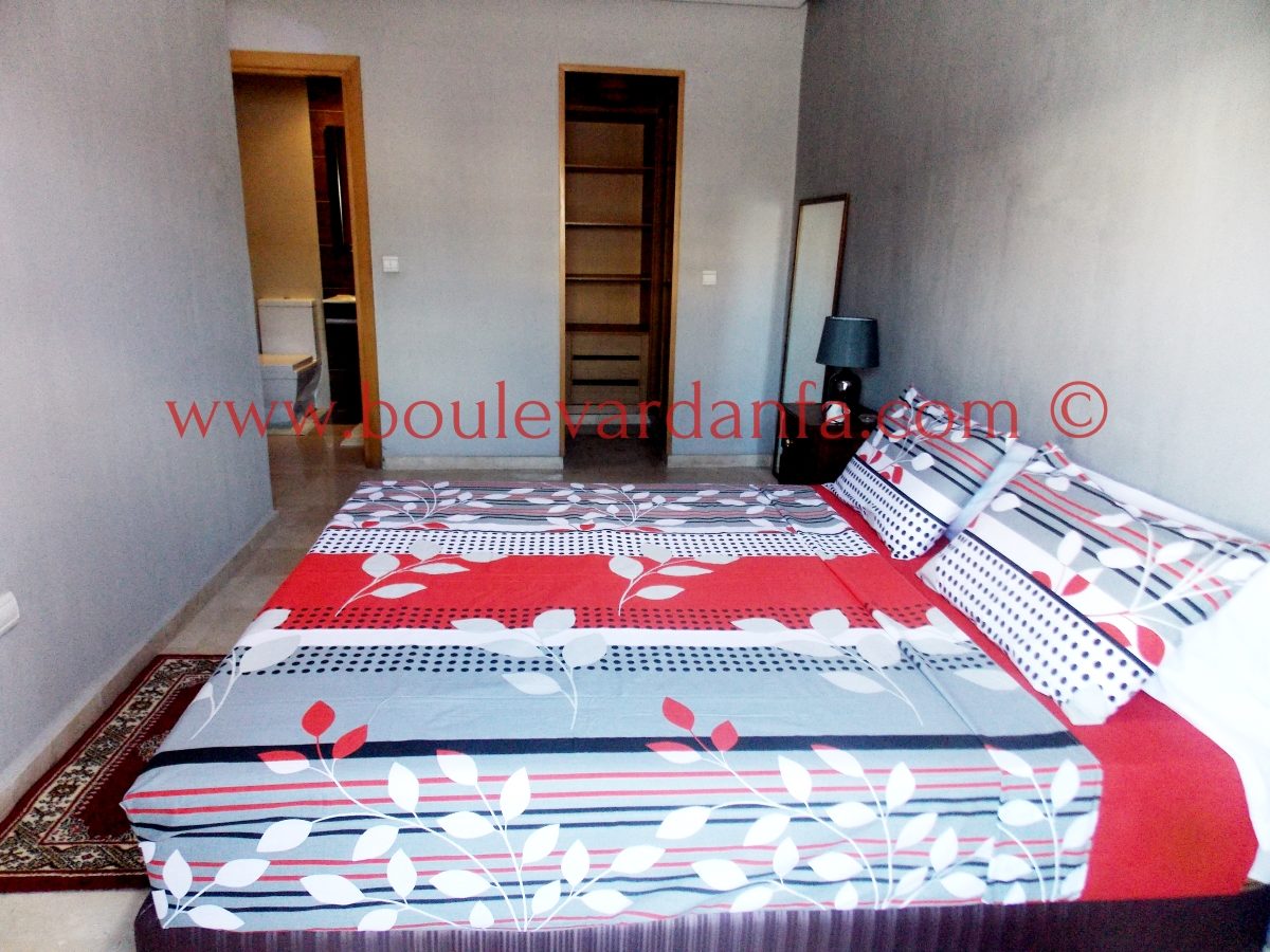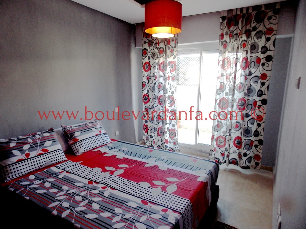 Très Joli appartement meublé à louer à quelques pas de Boulevard d'Anfa au centre de Casablanca. Cet appartement meublé avec goût est composé de deux chambres, deux salles de bain, un salon, et une grande terasse, le tout au 4ème étage d’une résidence sécurisée.