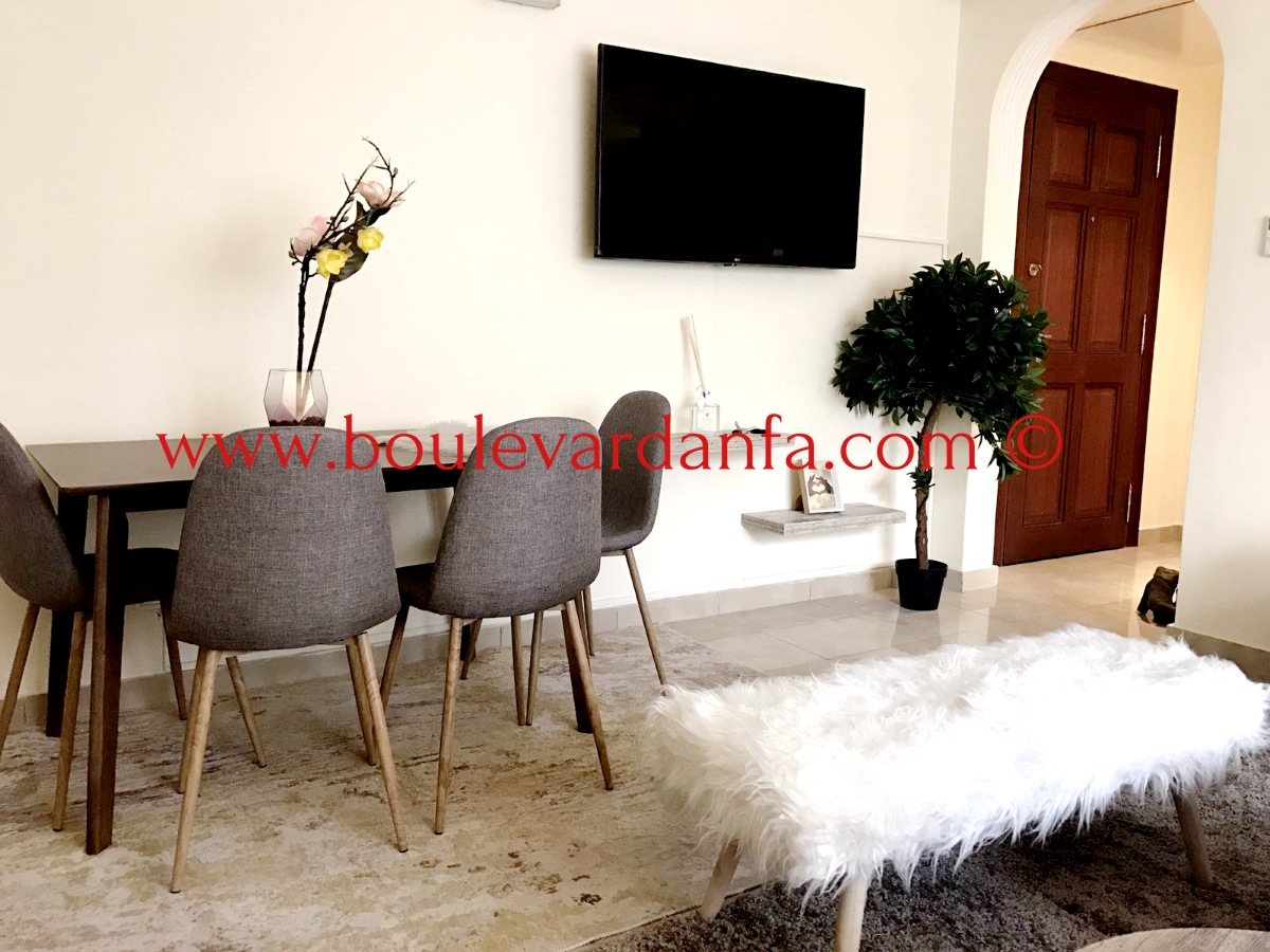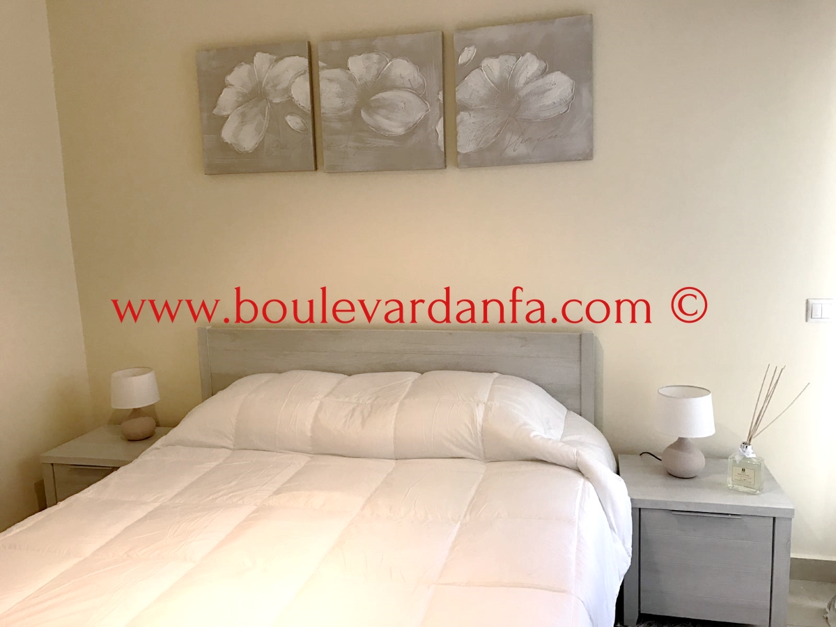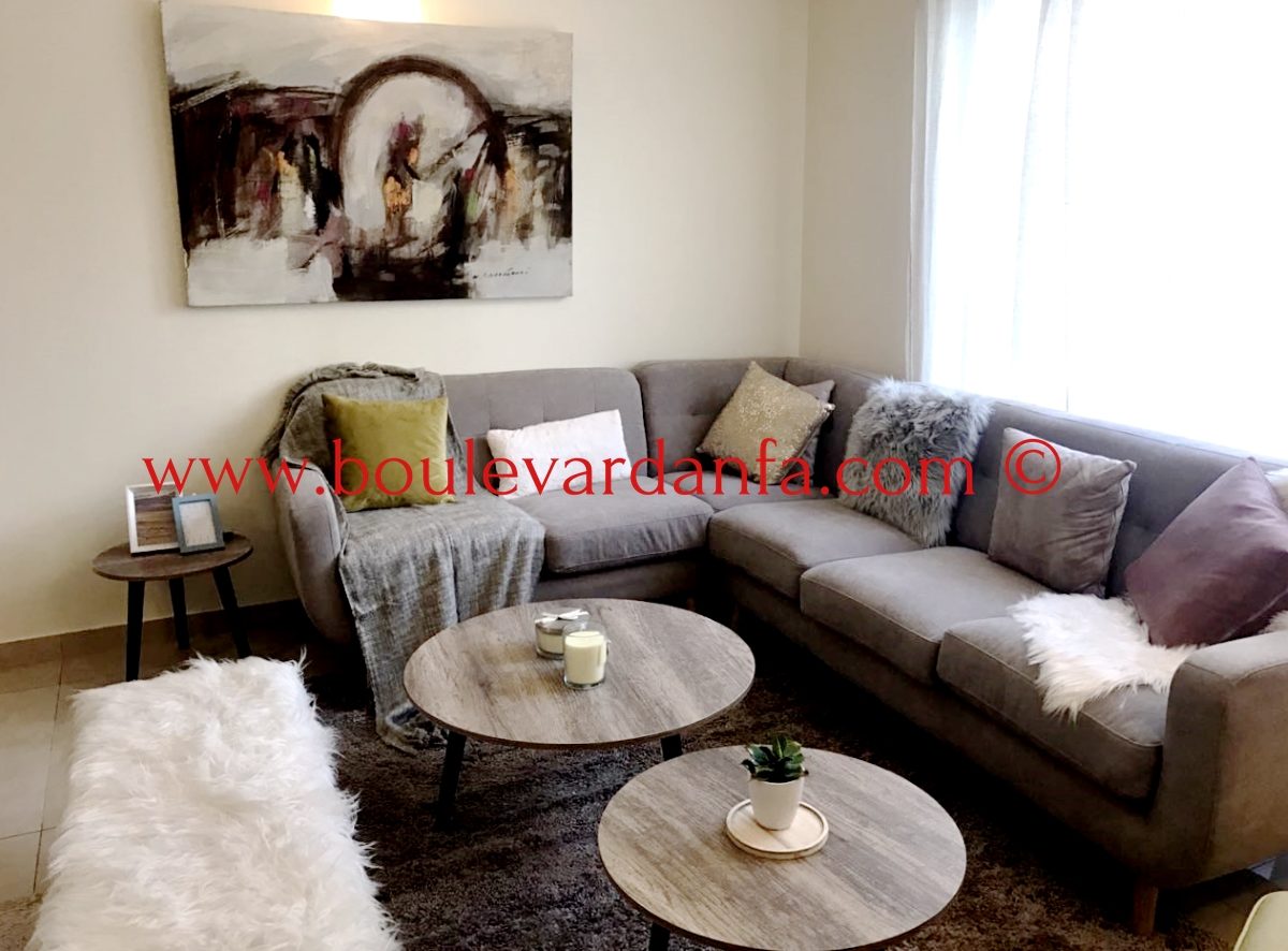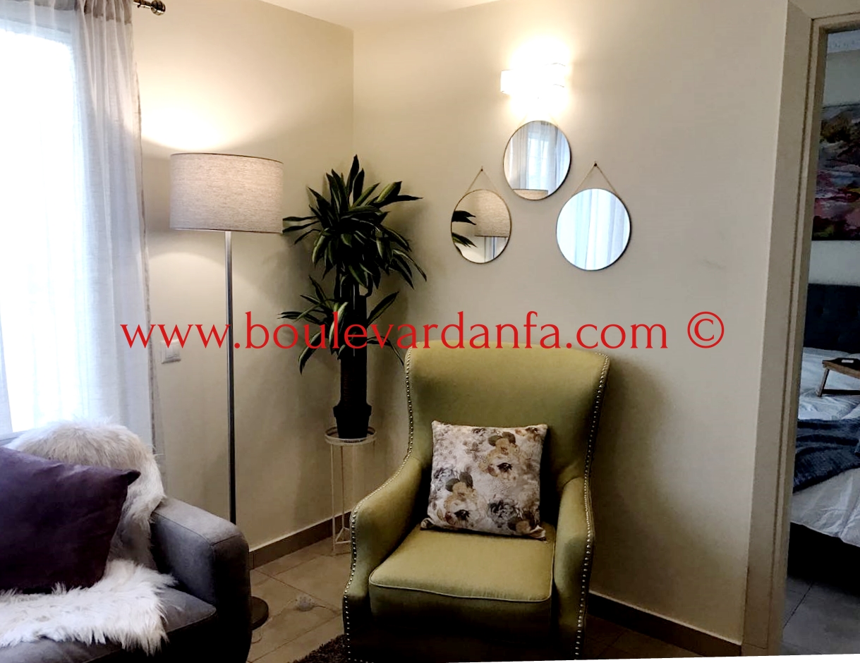 Chic appartement ensoleillé à louer meublé à Gauthier se composant d'un très joli séjour avec coin salle à manger, de deux chambres dont une suite parentale, de deux salles de bain, d'une cuisine entièrement équipée et d'une belle terrasse.