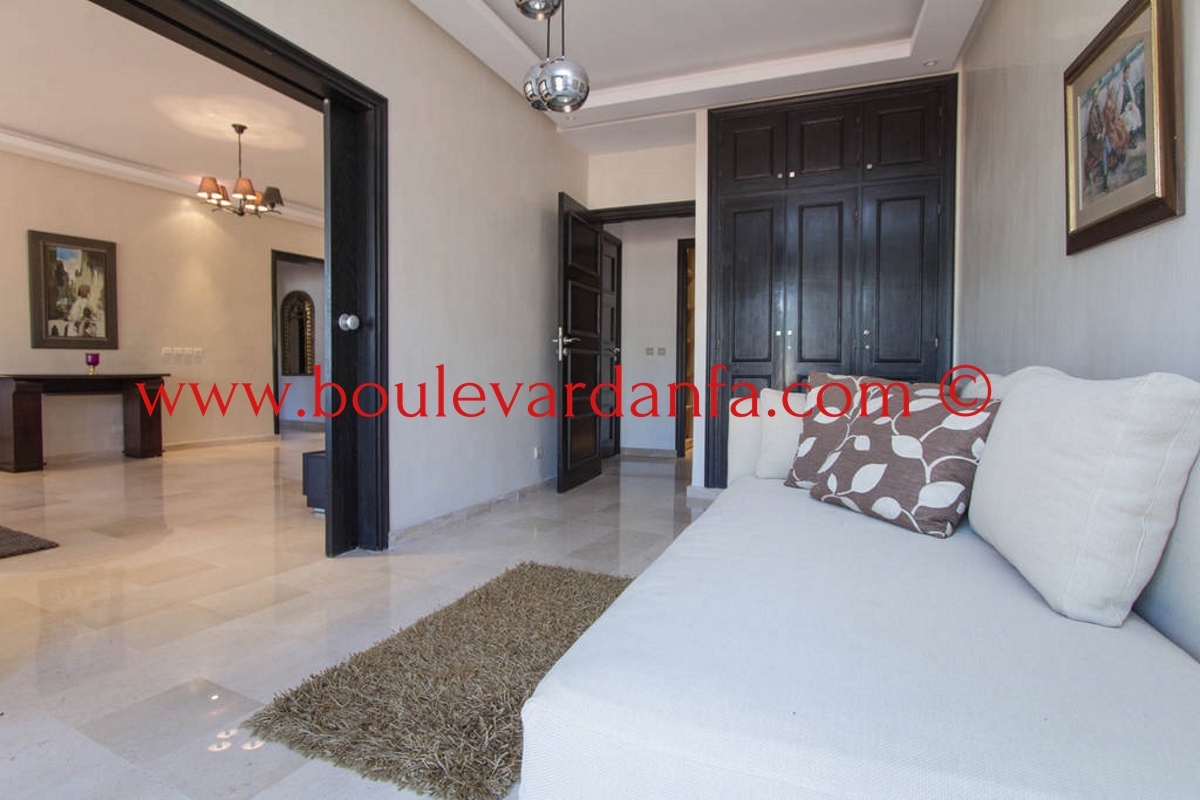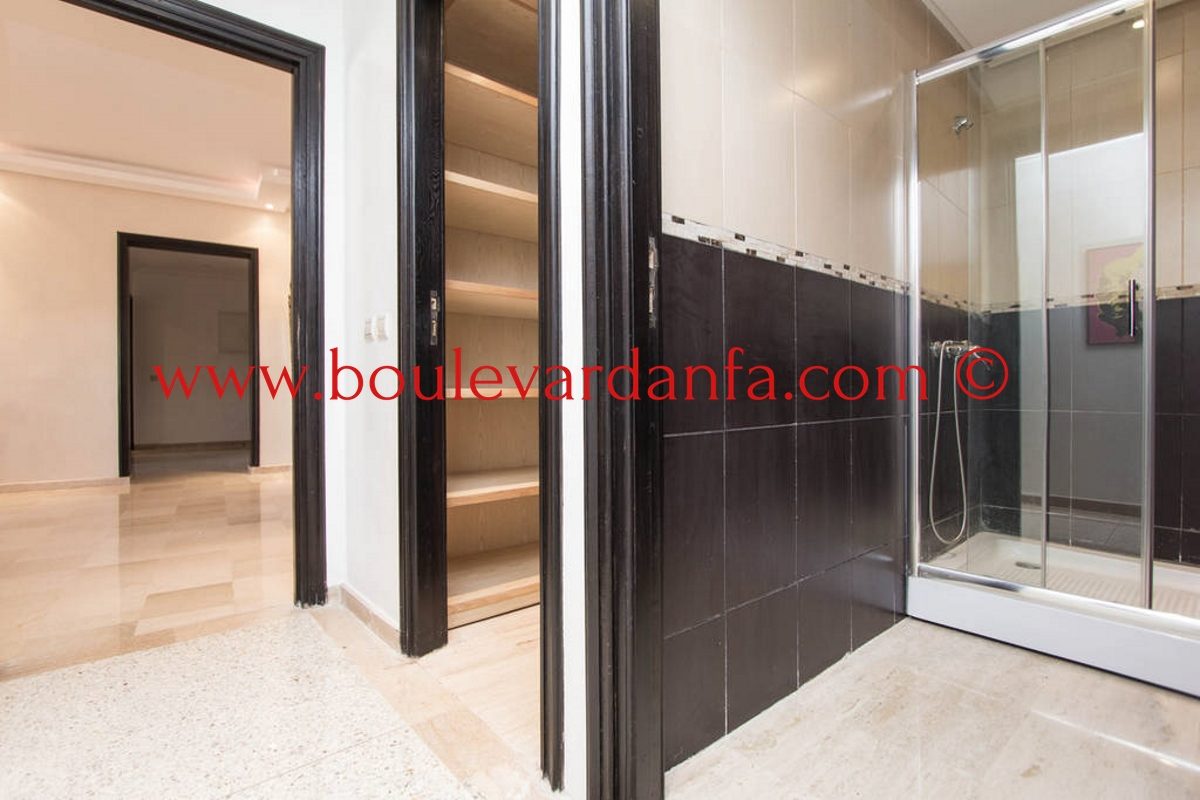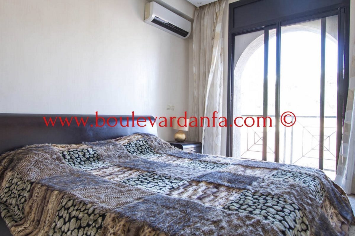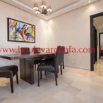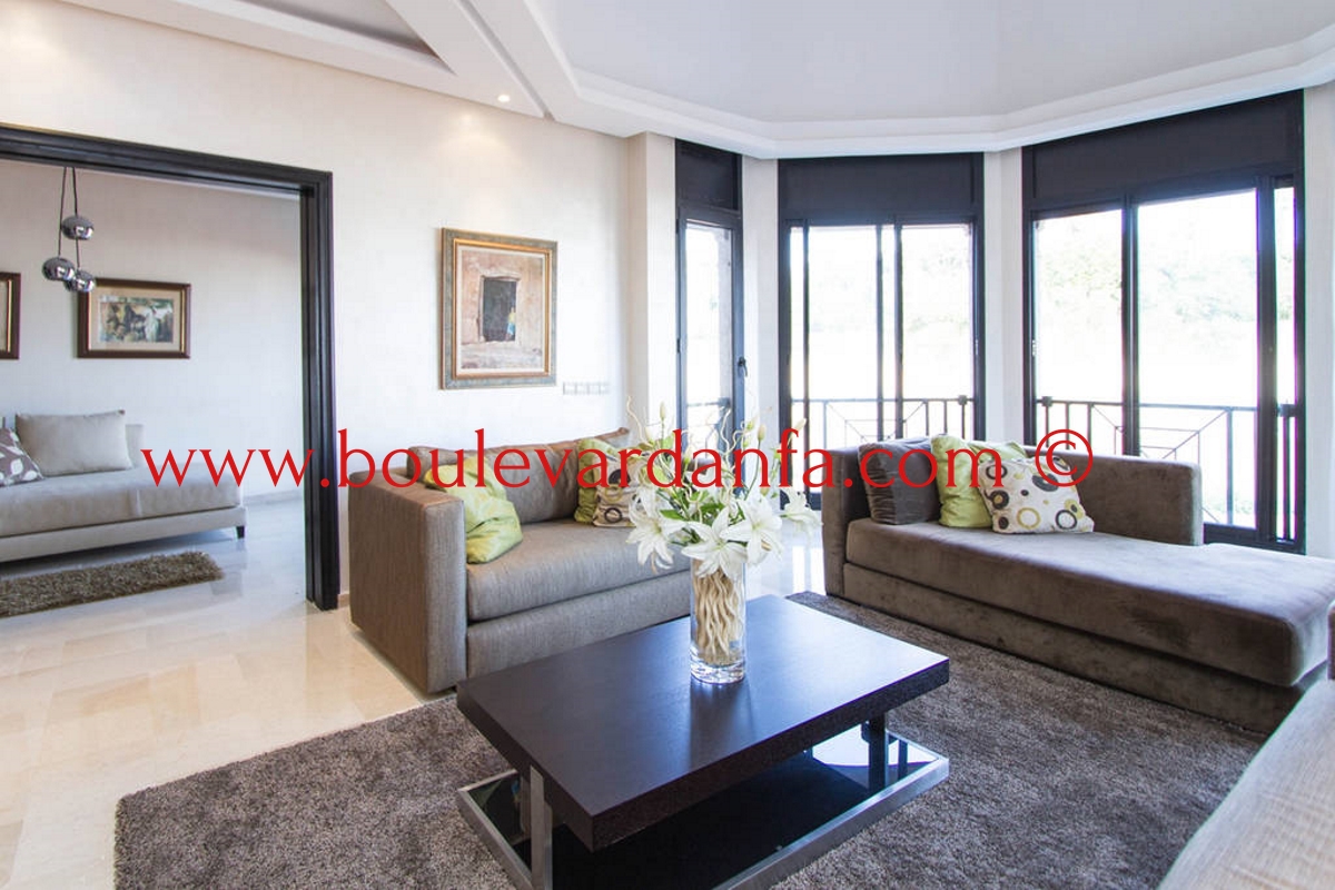 Charmant appartement meublé de 167m² à louer à ain diab dans une résidence calme et sécurisée 24h/24. Il est composé de trois chambres, un double salon avec un espace salle à manger, trois salles de bain, un petit dressing, une cuisine équipée et 2 balcons.