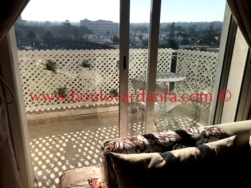 Très bel appartement meublé à louer sur triangle d'or se composant, d'une entrée, salle à manger, coin cheminée avec salon, 2 chambres à coucher, 2 salles de bain, balcon et une cuisine entièrement équipée.