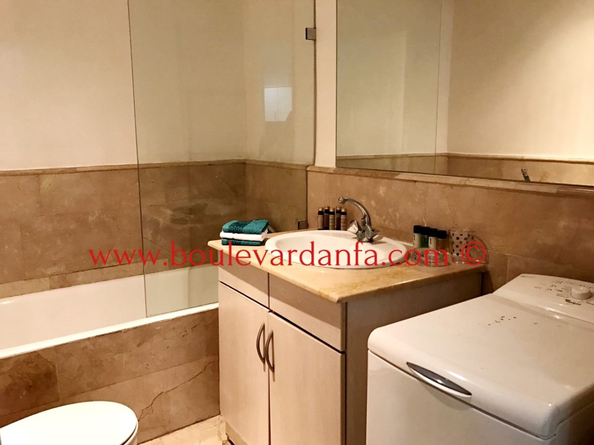 Beau studio de 70 m2 meublé au 5ème et dernier étage d'une résidence au niveau du rond point des sports . L appartement dispose d une grande chambre avec rangement , d’un salon avec coin salle à manger Cheminée rhabillée miroir Fonctionnelle , Cuisine nouvellement installée et équipée une terrasse et une salle de bain avec baignoire.