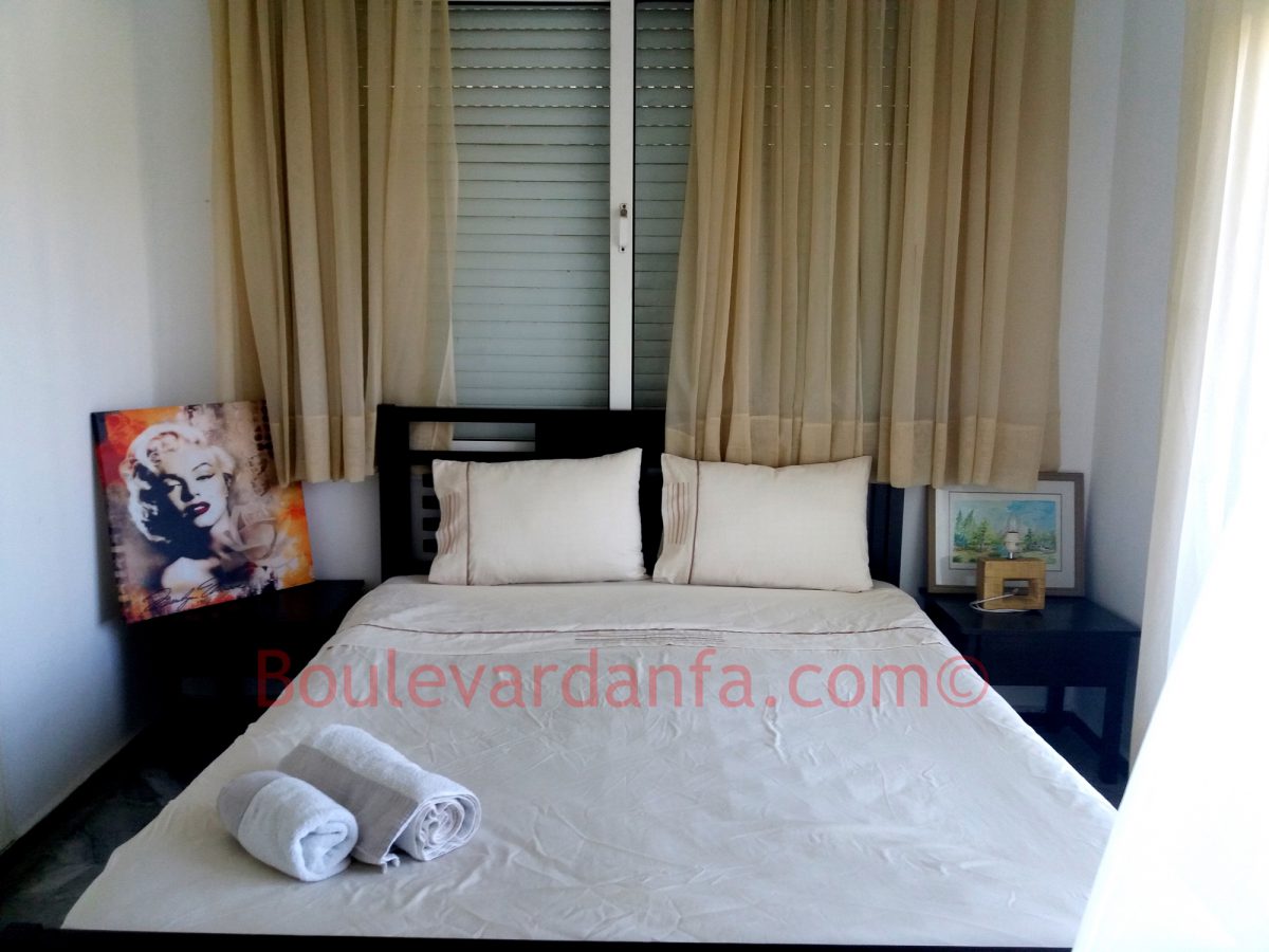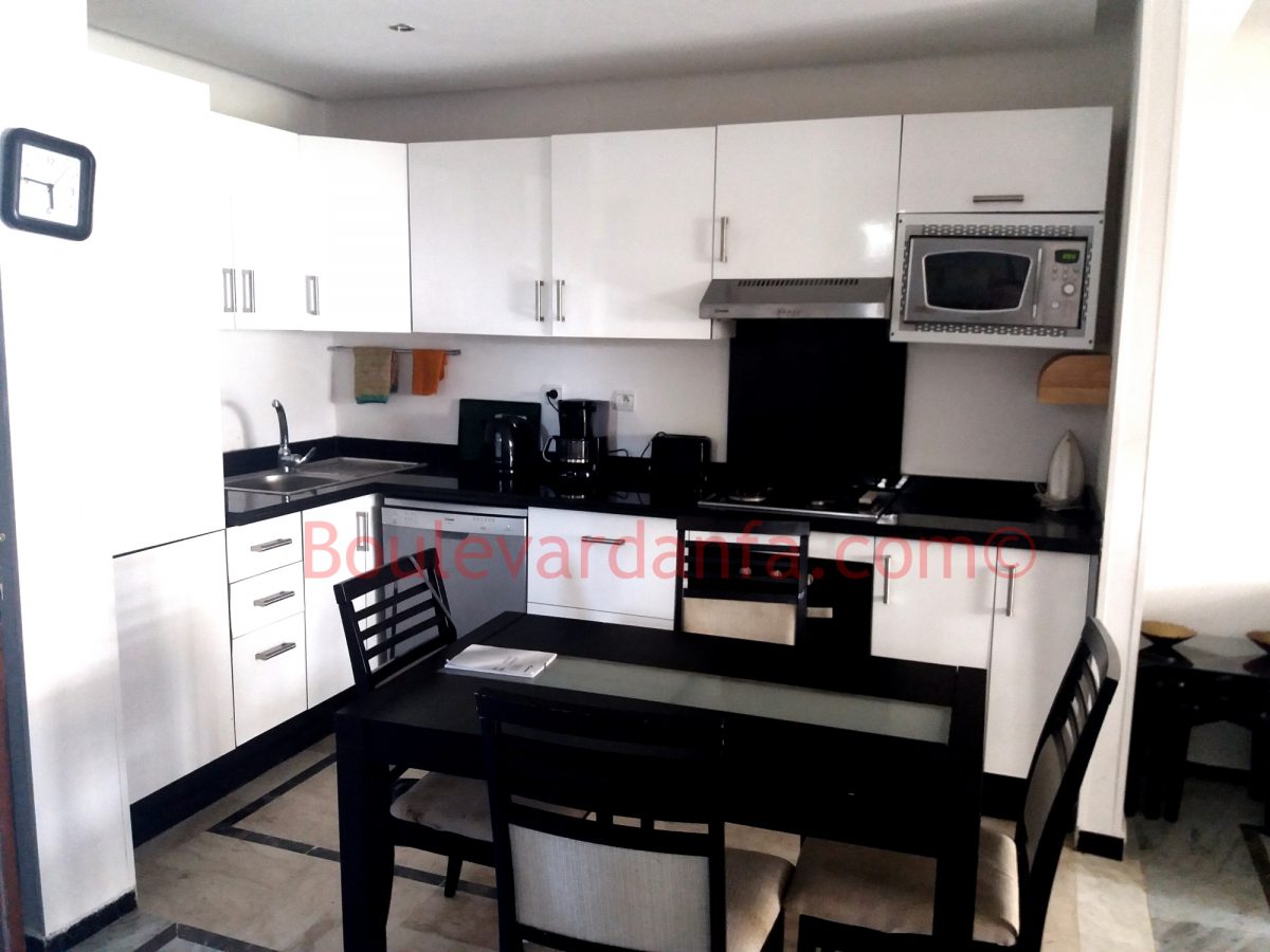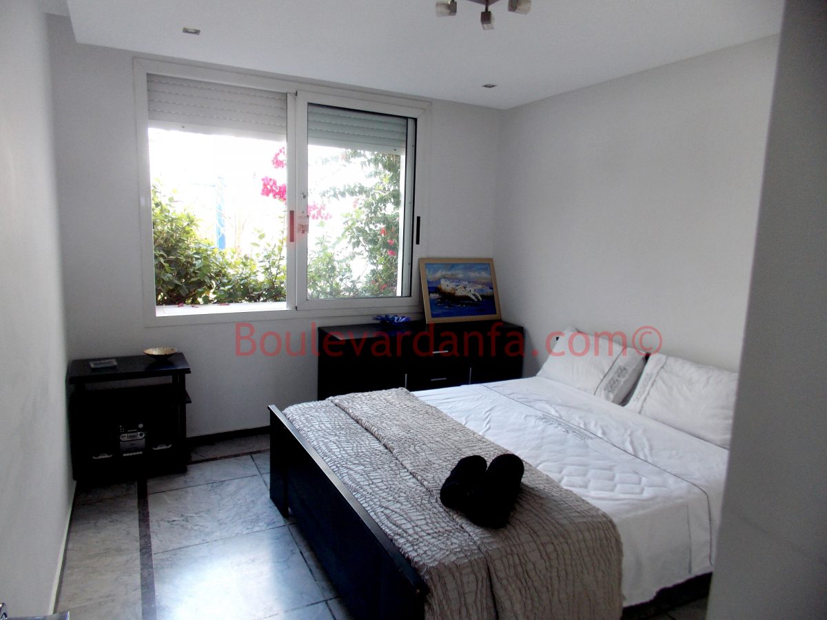 Very nice apartment in a closed residential group, very calm and secure. The apartment is right by the beach and few meters from the Morocco Mall. The residential group is equipped with green spaces, a beautiful swimming pool with private access to the beach. Shops, transport, nursery, American school are all within few minutes’ drive. The apartment is on the ground floor and consists of 2 bedrooms, living room and terrace.