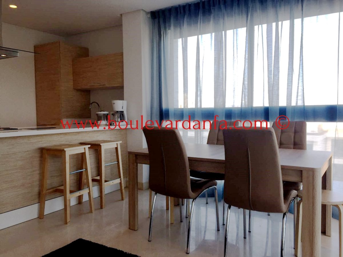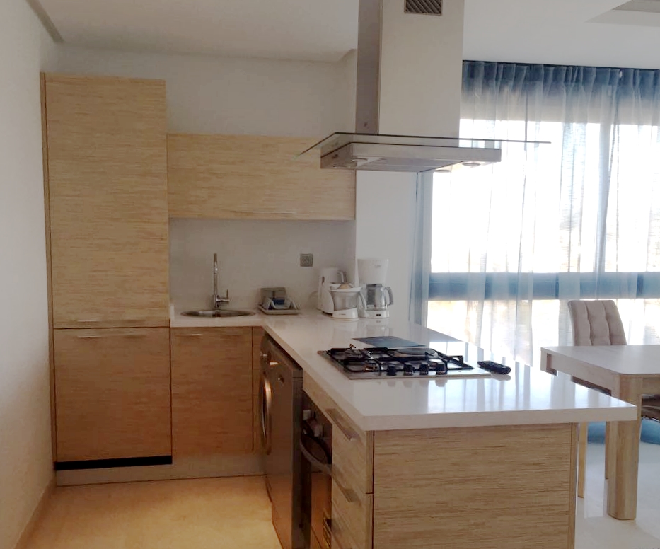 Très joli appartement meublé de 70m² à louer à Ain Diab, dans une résidence neuve, calme et sécurisée. L'appartement est composé d'une chambre, un salon, une salle de bain, une cuisine équipée, et un balcon et offre une belle vue sur mer.
